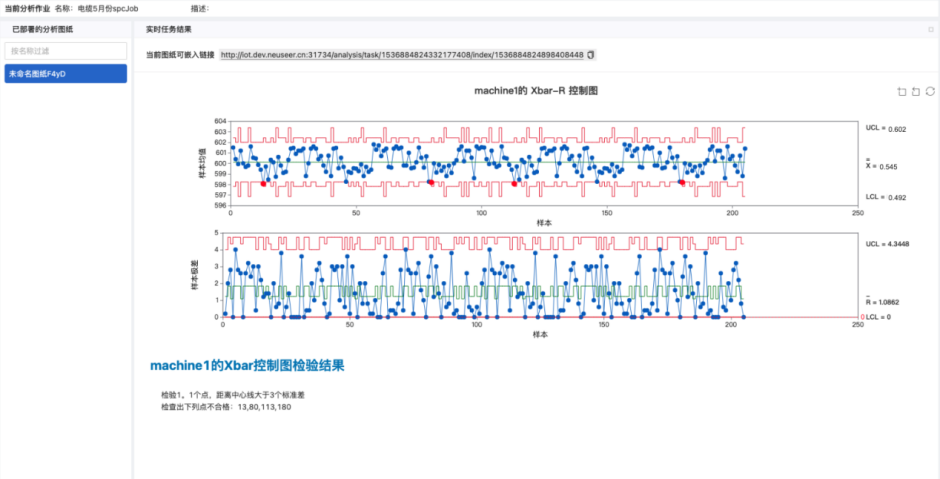 将SPC控制图计算得到的控制值,发布为应用,应用接收新的数据进行预测。寄云SPC分析应用可直接选择接收寄云物联网平台或外部厂商的设备数据,对数据进行预测。