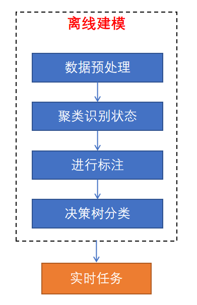 电潜泵故障诊断是对原始数据(数据包含日期、时间以及采油过程中电泵的电压、电流等)进行一定的处理过后,利用聚类算法估计数据的标签,并结合人工或业务经验来进行标注。通过决策树对标注后的数据进行训练与故障诊断,以实现电潜泵故障诊断的过程,最终结果用混淆矩阵的方式将预测结果和实际结果进行对比。